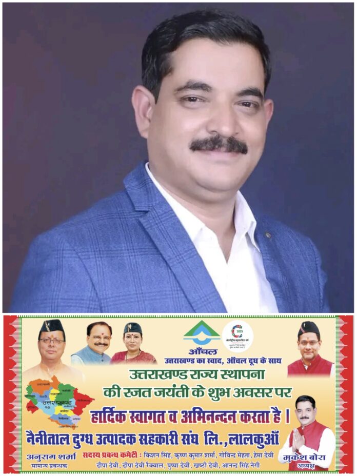 लालकुआं :, नैनीताल दुग्ध उत्पादक सहकारी संघ लिमिटेड, लालकुआं द्वारा उत्तराखंड राज्य स्थापना दिवस की रजत जयंती के अवसर पर दुग्ध विकास मंत्री सौरभ बहुगुणा के मार्गदर्शन में 1 नवम्बर से 9 नवम्बर तक भव्य नौ दिवसीय कार्यक्रम आयोजित होंगे कार्यक्रमों में स्वास्थ्य, खेल, महिला सशक्तिकरण, सांस्कृतिक एवं उपभोक्ता जागरूकता से जुड़े राज्य स्थापना की रजत जयंती के अवसर पर आँचल दुग्ध संघ द्वारा कई जनहितकारी और जागरूकता कार्यक्रम आयोजित किए जा रहे हैं। इन कार्यक्रमों में अस्पतालों में मरीजों को निःशुल्क दुग्ध वितरण, दुग्ध उत्पादकों का निःशुल्क स्वास्थ्य परीक्षण, साइकिल रेस, हाफ मैराथन, स्कूली बच्चों का डेयरी भ्रमण, जनपद भर में जागरूकता अभियान, समाज सेवा, महिला सशक्तिकरण प्रतियोगिताएं तथा सांस्कृतिक कार्यक्रम शामिल हैं। इन आयोजनों का मुख्य उद्देश्य दुग्ध उत्पादकों, उपभोक्ताओं तथा आम जनमानस को शुद्ध दुग्ध उत्पादन, दूध आधारित पोषण और सहकारिता की भूमिका के प्रति जागरूक करना है। इस अवसर पर दुग्ध उत्पादकों एवं कर्मचारियों के लिए निःशुल्क स्वास्थ्य परीक्षण शिविर भी लगाए जायेंगे। संघ के अध्यक्ष मुकेश बोरा ने बताया कि “रजत जयंती पर्व को राज्यव्यापी उत्सव के रूप में मनाने की तैयारी की गई है, जिससे राज्य की प्रगति, किसानों की भागीदारी और महिलाओं की सशक्त भूमिका को उजागर किया जा सके।”