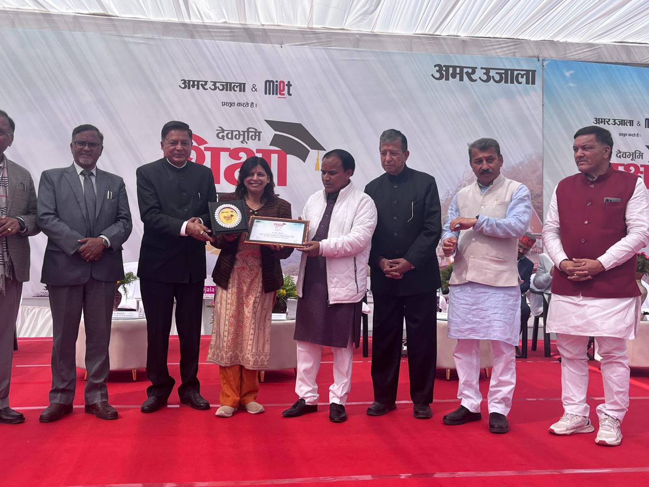 नैनीताल। शिक्षा के क्षेत्र में उत्कृष्ट योगदान के लिए कुमाऊँ विश्वविद्यालय के रसायन विज्ञान विभाग की प्रोफेसर गीता तिवारी तथा वनस्पति विज्ञान विभाग के विभागाध्यक्ष प्रोफेसर ललित तिवारी को ‘देवभूमि उत्कृष्टता सम्मान–2026’ से सम्मानित किया गया। यह सम्मान प्रदेश के शिक्षा मंत्री डॉ. धन सिंह रावत द्वारा प्रदान किया गया। यह प्रतिष्ठित सम्मान एमआईईटी तथा अमर उजाला के संयुक्त तत्वावधान में आयोजित समारोह में प्रदान किया गया।