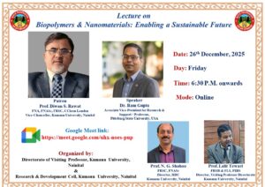 ऑनलाइन आमंत्रित व्याख्यान में बायोपॉलिमर और नैनोमटेरियल्स पर विशेषज्ञों ने साझा किए शोध अनुभव… रिपोर्ट- (सुनील भारती) “स्टार खबर” नैनीताल..