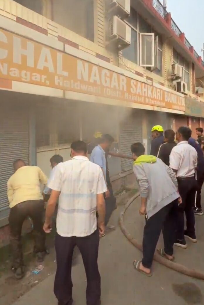 नैनीताल। हल्द्वानी देवलचौड़ स्थित कुर्मांचल बैंक की शाखा में अचानक भीषण आग लगने से क्षेत्र में अफरातफरी मच गई। आग की सूचना मिलते ही पुलिस और फायर ब्रिगेड की टीमें तुरंत मौके पर पहुंचीं और कड़ी मशक्कत के बाद आग पर काबू पाया गया। घटना में बैंक को भारी नुकसान हुआ है और कई महत्वपूर्ण दस्तावेज व फाइलें जलकर राख हो गईं।