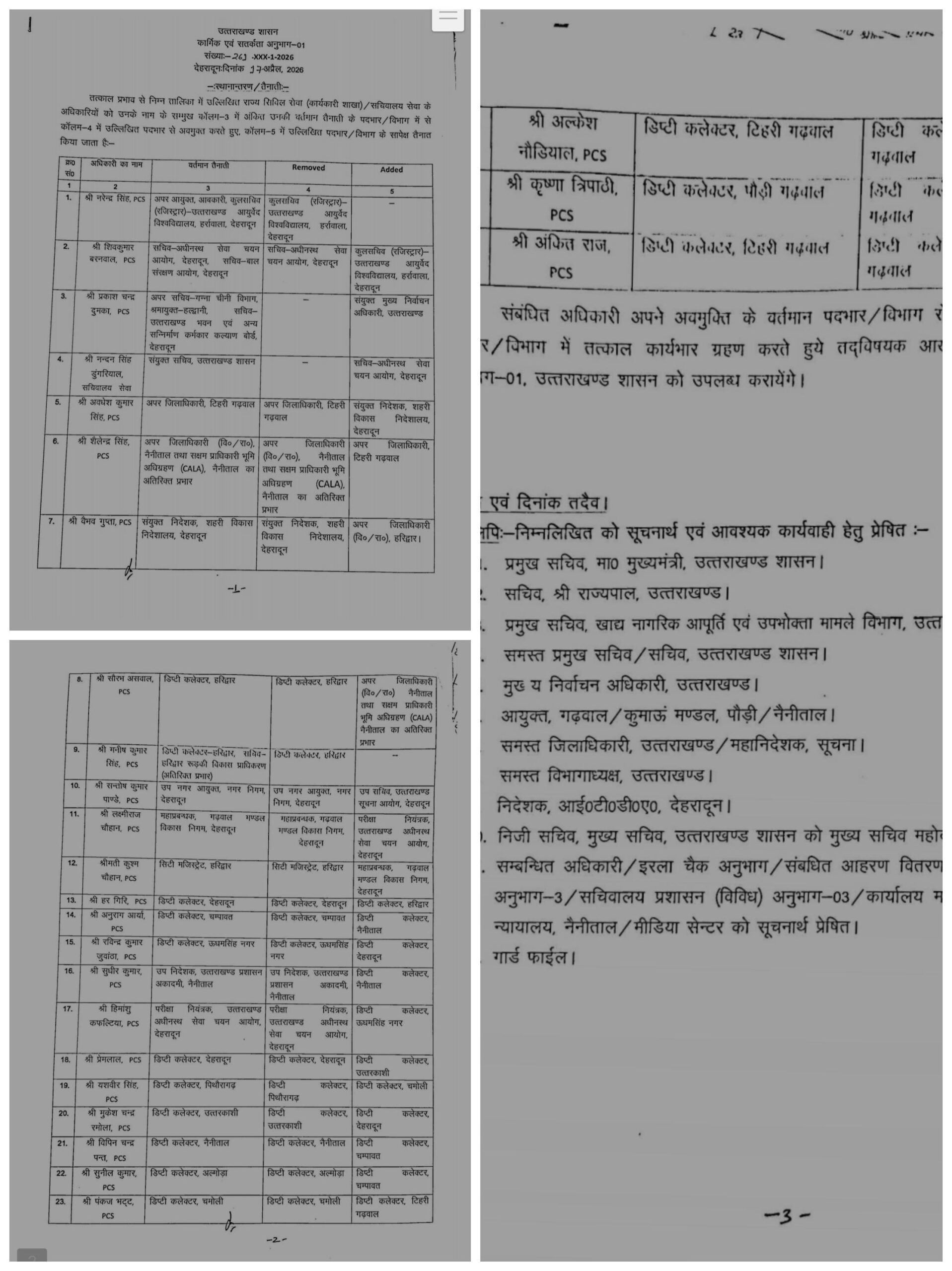 उत्तराखण्ड में प्रशासनिक फेरबदल, 6 IAS और 26 PCS अधिकारियों के तबादले… रिपोर्ट- (ब्यूरो ) “स्टार खबर” नैनीताल..